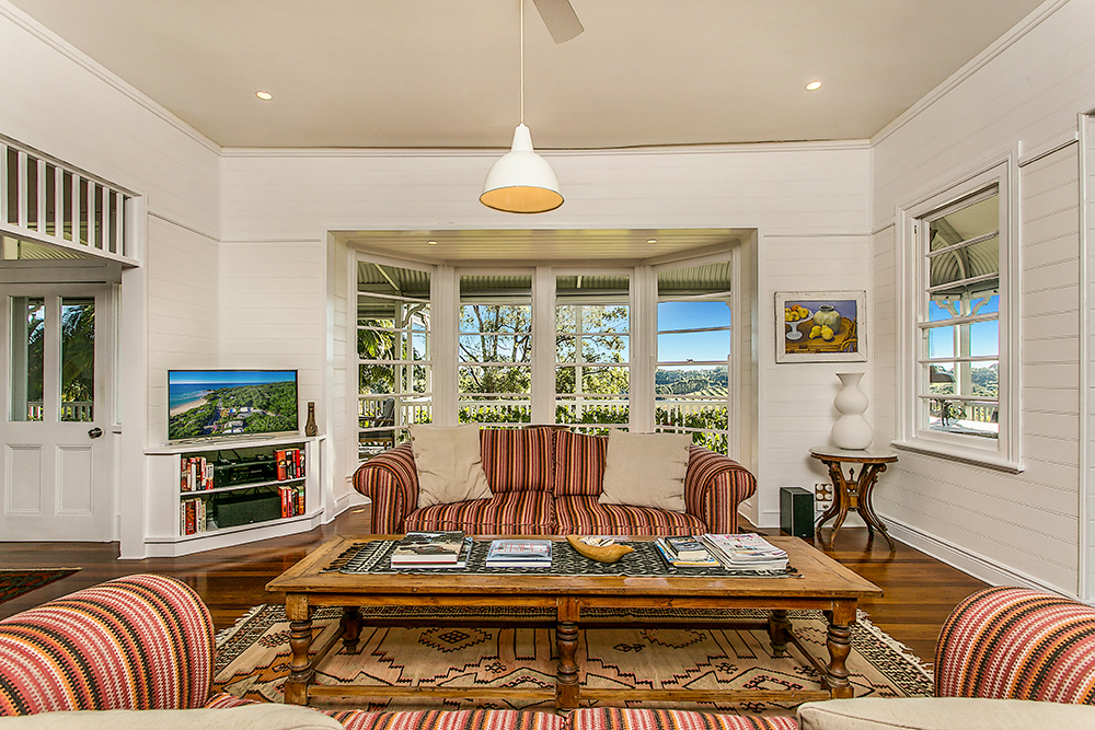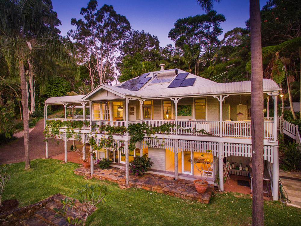 Sunnycrest farm is nestled amongst the green rolling hills of the Byron Bay hinterland near the popular village of Bangalow. Situated on around 10 acres of lush green lawns the timber Queenslander oozes the charm and character the area is famous for. Large shady wrap-around verandas provide ample outdoor entertaining and relaxation options whilst a large in-ground pool and tennis court provide the ideal addition to any family/holiday home.